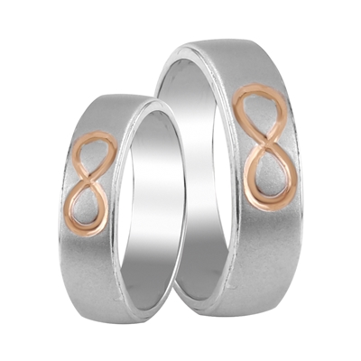 Platinum band with the eternity sign on top in glossy rose gold...